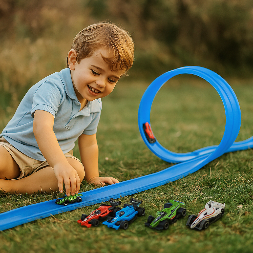 - 🚗 Kreativitet uden grænser – Børn kan skabe deres helt egne racerbane-designs og ændre dem igen og igen.