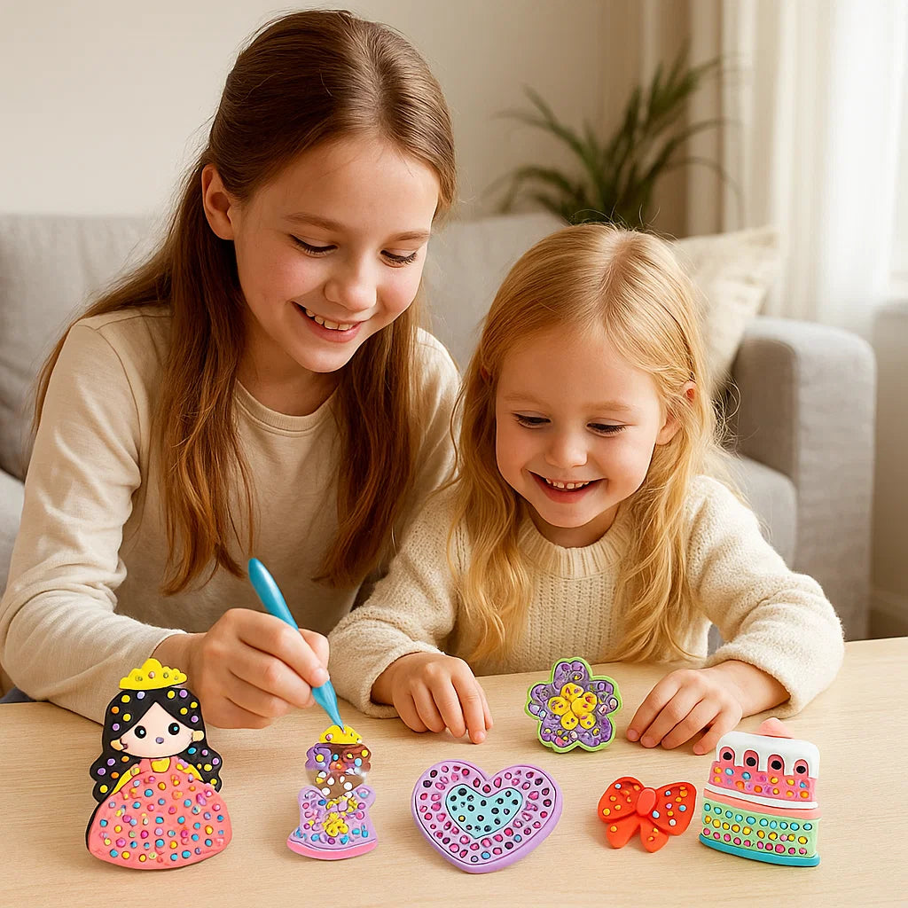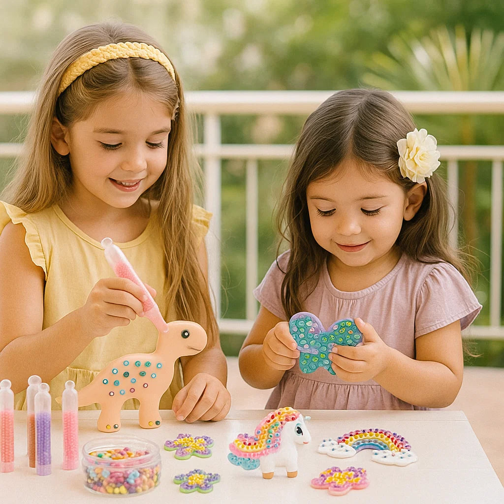 Fortryllende perlemaleri – DIY-sæt til børn forvandler krea-tiden til en glitrende oplevelse fuld af farver, former og fantasi. Med farvede perler, kærligt udformede motiver og tydelige vejledninger kan børn trin for trin skabe deres eget skinnende kunstværk. Sættet styrker tålmodighed, kreativitet og finmotorik og giver samtidig en afslappende, legende aktivitet, som gør børn stolte af deres resultat.