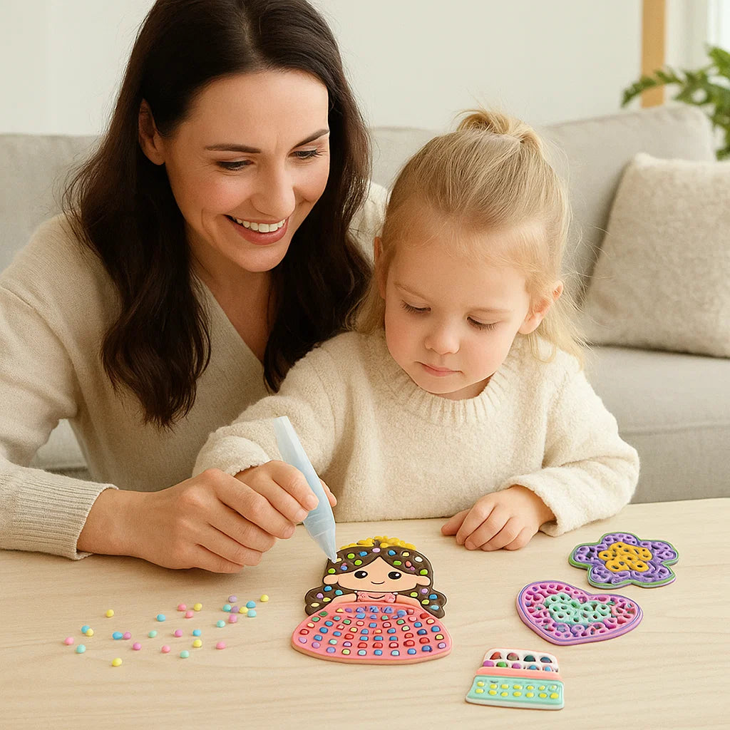 - 🧠 Styrker koncentration og tålmodighed – den præcise placering af perlerne hjælper børn med at udvikle udholdenhed og roligt arbejdstempo.